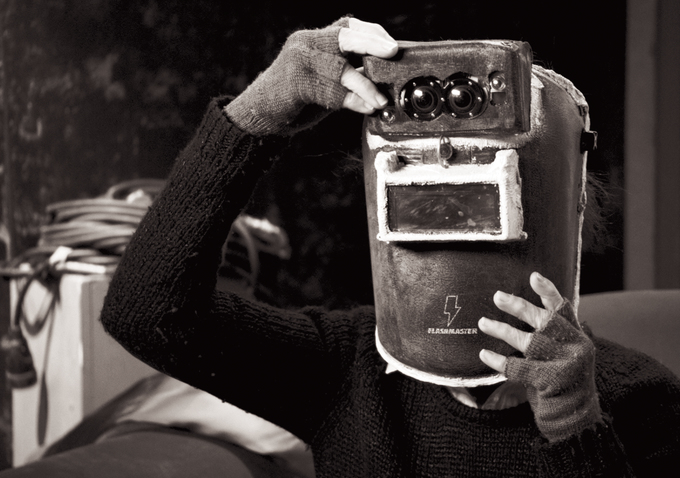 Her only remedy, she shares, “is to cast that violence back.” When she goes out in public, the woman dons a helmet that looks like it could belong to a science fiction flick or a hazmat facility. On it, two Go Pro cameras serve as surrogates for eyes, recording her day with a tiny but ominous red light (the only hint of color in the otherwise black-and-white film). The helmet serves both to shield her likeness from view and record the events around her. She readily obliges when the interviewer asks her to put on the mask, reversing the camera so that we—the viewers—now are the wearers of the helmet. The final scene is fantastically haunting: the woman faces out of the front car of the subway, layering the stark train tracks with her shadowy reflection and those of the passengers behind her.